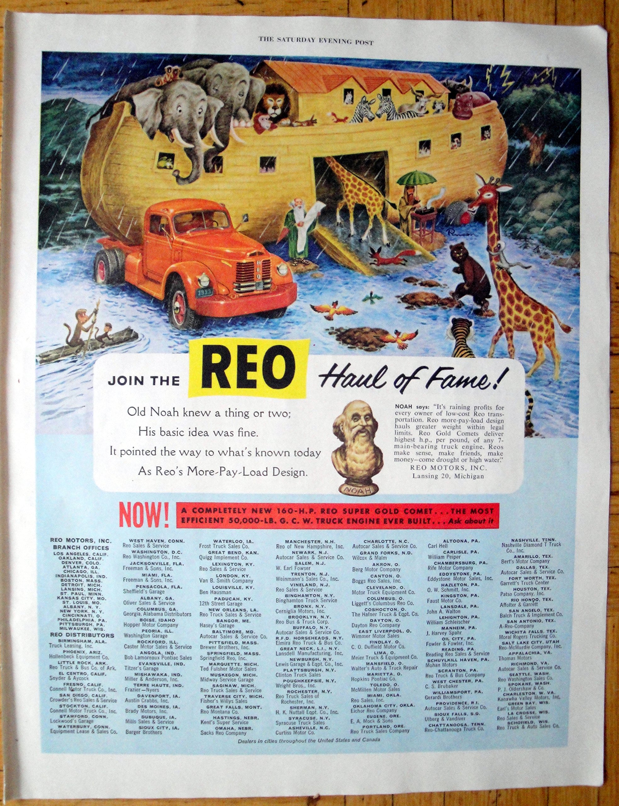 Amazon Com 1953 Reo Truck Pulling Noah S Arc Gold Comet Engine Original 13 5 10 5 Magazine Ad Posters Prints