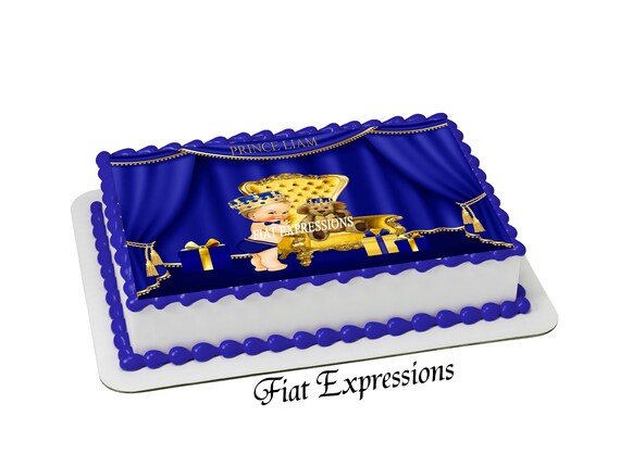 Prince Baby Shower Edible Cake Image Royal Blue Gold Digital Etsy Israel